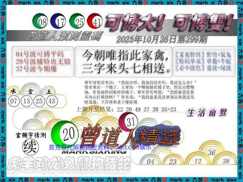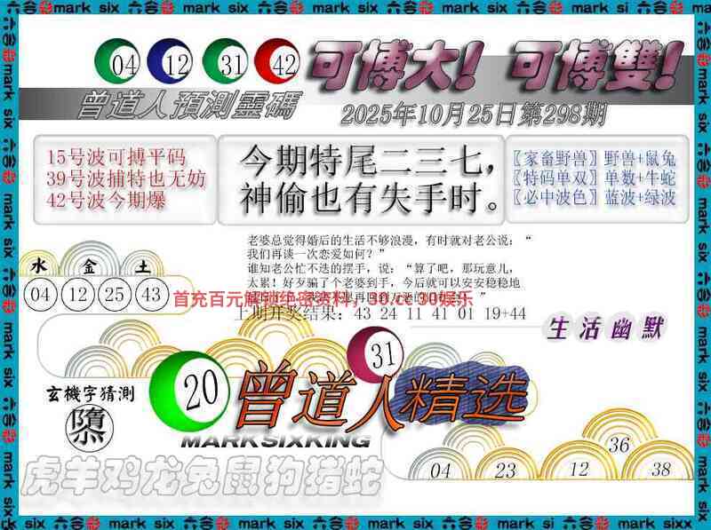 298期:男女二肖【男肖+鸡猪】开:羊23错